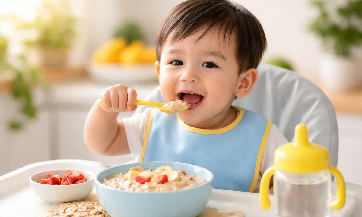 Trẻ có thể dùng yến mạch thay cho bữa sáng hoặc bữa xế. Ảnh được tạo bởi AI