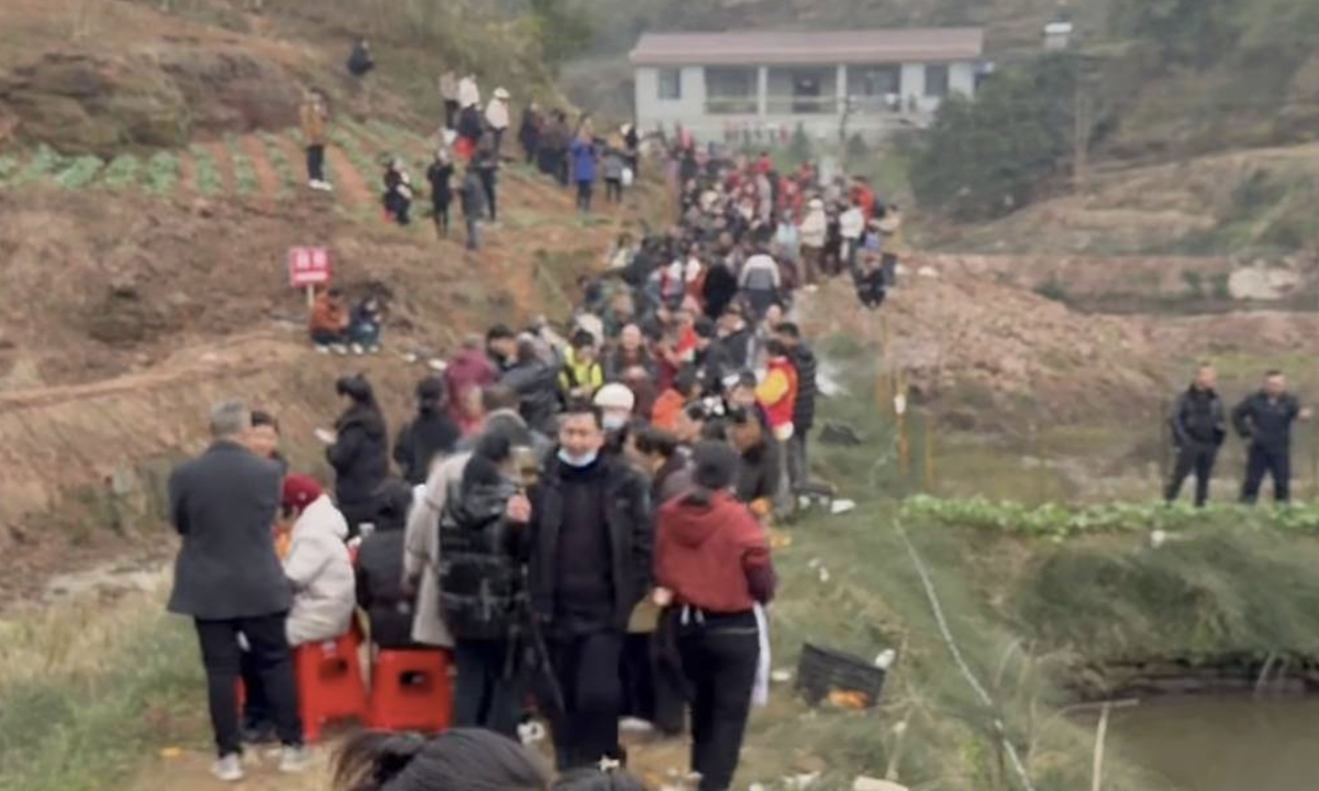 Người dân khắp nơi đổ về làng Hejiawan, thành phố Zigong, tỉnh Tứ Xuyên, ngày 15/1. Ảnh: Sohu