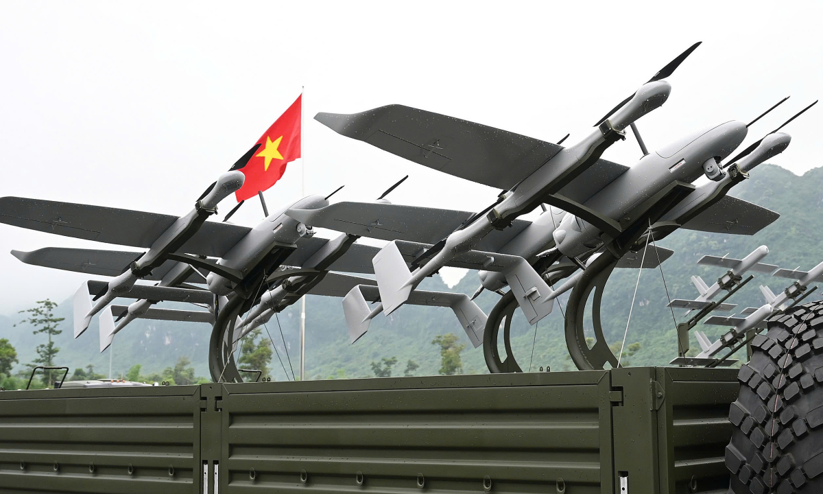 Mẫu khí tài UAV do Việt Nam sản xuất, trong đội hình hợp luyện chuẩn bị cho lễ diễu binh, diễu hành A80. Ảnh: Giang Huy